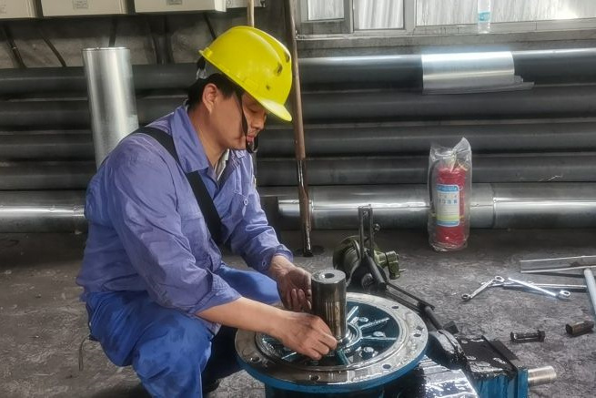 一次業主反饋高爐卷揚繩輪異響,在高達80多米的高爐卷揚繩輪使用現場,謹慎仔細的他檢查完繩輪的安裝情況后,又到主卷揚機房觀察料車運行情況,跑上跑下多次,拿著卷尺量了又量、測了又測,最終判斷出是繩輪安裝中心與卷揚機卷筒裝置中心不一致,成功解決了問題。另一次在武鋼現場服務時,設備運行異常,而異常間隔時間很長且不規律,有時候是2小時呈現一次,有時候是4小時呈現一次。為了充分查清楚問題所在,邵春亮中午僅帶著一個雞蛋和蘋果,連續三天蹲守在現場進行運行狀況觀察分析,最后判斷出是電氣控制的問題。而更讓邵春亮興奮的是,這次問題的“暴露”,還佐證了以往機械處理問題的不足之處,他及時反饋公司,為后續減速機異常問題處理提供了寶貴經驗。