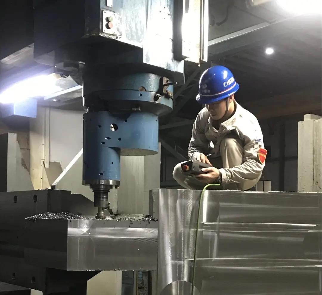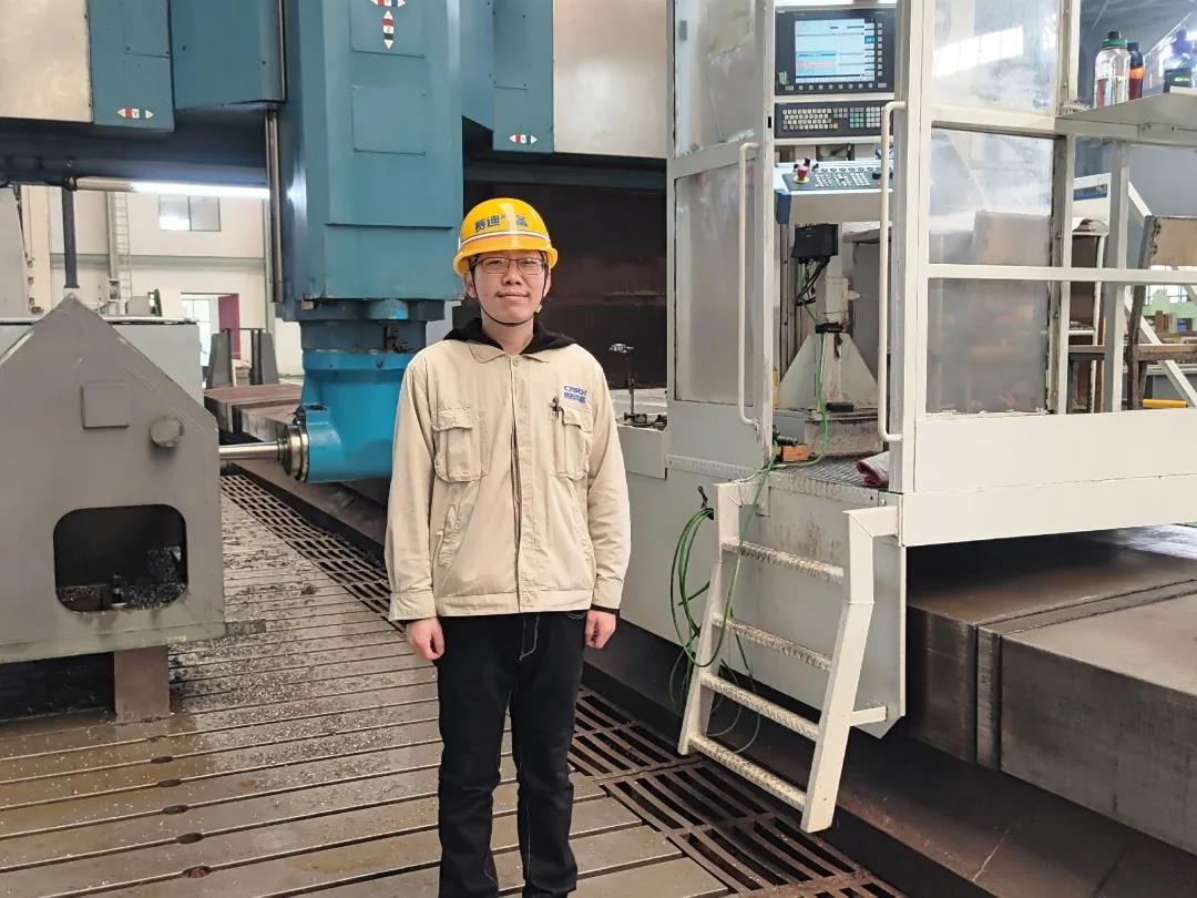吳波,30歲,金工車間移動龍門加工中心主操。在接到上機架和下機架兩個“巨無霸”的加工任務后,吳波立即召集斯柯達HCW3-260銑鏜床、移動龍門分段定位橫梁加工中心VECOWILL 600TAG等大型設備操作者對加工任務進行分解,對加工過程中可能遇到的難點進行預判和消化。作為國內首臺套產品,此類設備的加工沒有任何經驗可借鑒,吳波從刀具和操作上做優化,克服機架重量分布不均導致加工精度難以控制等難題,保證精度要求。為滿足生產需求,他組織班組人員采取24小時連軸轉的方式,與時間賽跑,最終不負眾望,圓滿地完成此次艱難的加工任務。