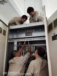 然而,我們能等,客戶不能等,8月因限電以來,部分項目已出現(xiàn)了拖期現(xiàn)象。面對繁重的生產(chǎn)任務(wù),裝備公司各級領(lǐng)導(dǎo)可謂焦急萬分,經(jīng)研究最終決定租賃發(fā)電機保生產(chǎn)。8月19日,緊急聯(lián)系的兩臺發(fā)電機順利到貨,設(shè)備管理室人員立即開展緊張調(diào)試工作,解燃眉之急。當(dāng)天氣溫高達(dá)43℃,要完成接線,設(shè)備管理室人員需先斷開市政電源,在沒有空調(diào)風(fēng)扇、封閉的設(shè)備操作間內(nèi)頂著高溫調(diào)試。在非常人能忍受的高溫之下,他們從19日早上一直工作到20日凌晨,終于確保了20日按時恢復(fù)生產(chǎn)供電,生產(chǎn)系統(tǒng)正式復(fù)工復(fù)產(chǎn)。