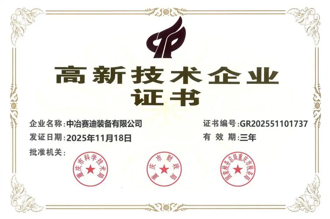 中冶賽迪裝備順利通過2025年度國(guó)家高新技術(shù)企業(yè)復(fù)審認(rèn)定